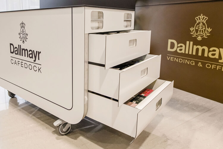 Hledáte-li do interiéru reprezentativní prvek s vysokou funkčností, už nemusíte dále pátrat. Cafédock představuje mobilní centrum pro setkávání při pracovních pauzách, konferenčních přestávkách a prezentacích. Káva, čaj, voda, džusy, drobné občerstvení, ale i hrníčky, sklenice, kelímky, lžičky, míchátka a doplňky ke kávě (cukry, sušenky, smetanu do kávy), to vše máte na dosah, v jednom mobilním modulu.